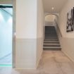 Please note that there are three steps connecting the landing, where the elevator stops, to the apartment's main level.